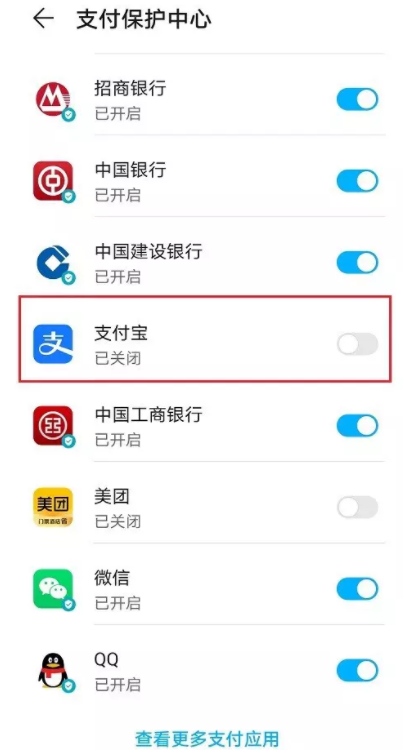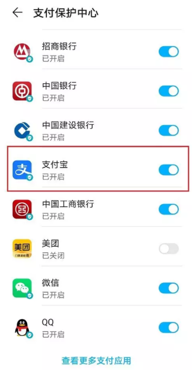点击选择支付宝,即可开启支付宝支付保护,大家根据需要进行使用。