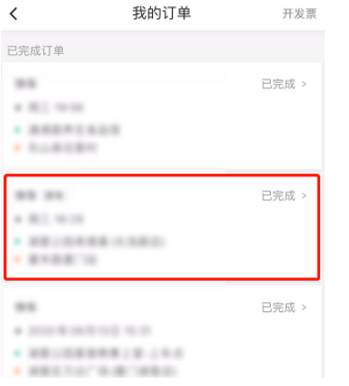 查看我的订单,点击需要拉黑的司机订单,