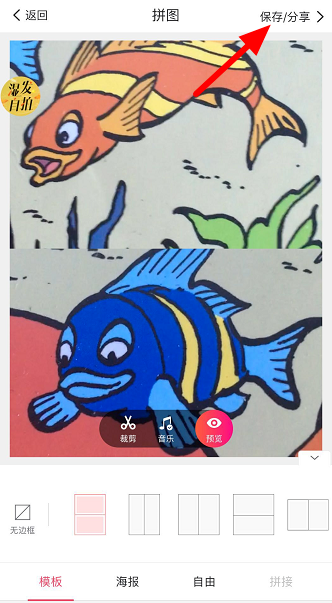 最后点击右上角的【保存/分享】,你已经完成了视频拼接处理。