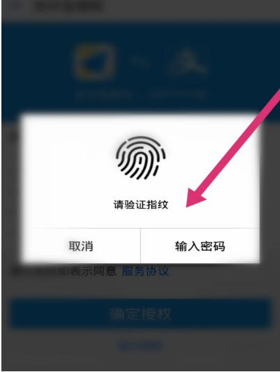 提示验证指纹,如图,你可以选择指纹验证或者密码验证,