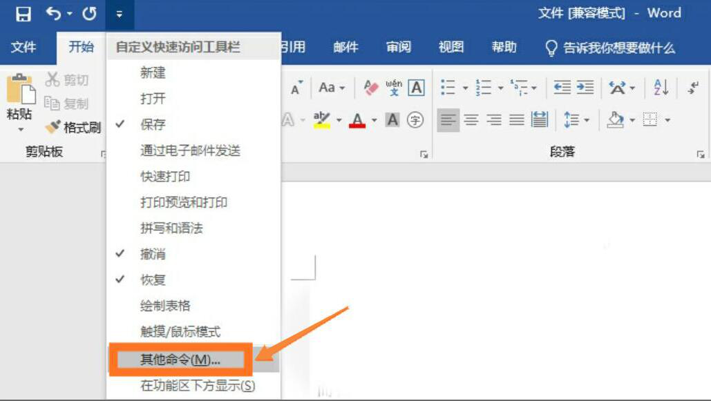 2、此时,word会弹出它的菜单列表,我们从中点击“其他命令”。