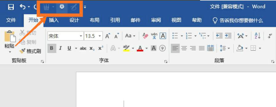 6、最后,回到word编辑界面,可以在左上方看到word画笔工具已经成功添加了。