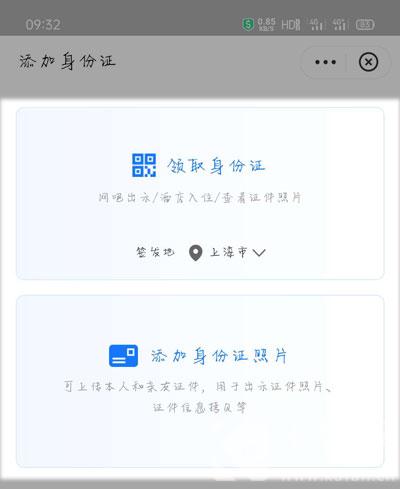 4、随后进入添加身份证页面,选择添加方式:签发地领取、手动上传身份证正反面;