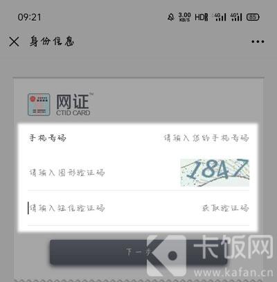 5、再进行手机号码验证,输入手机号码、图形验证码、短信验证码,点击【下一步】;