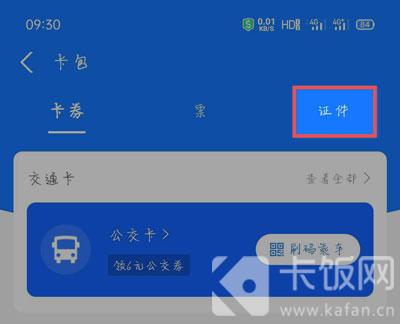 2、在卡包中,点击上方的【证件】类别;