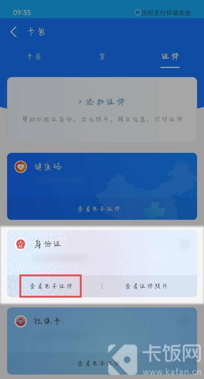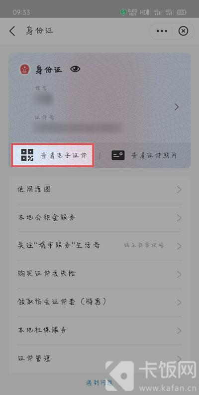 6、或者通过卡包证件页面,点击【查看电子证件】进入,即可查看自己的电子身份证;