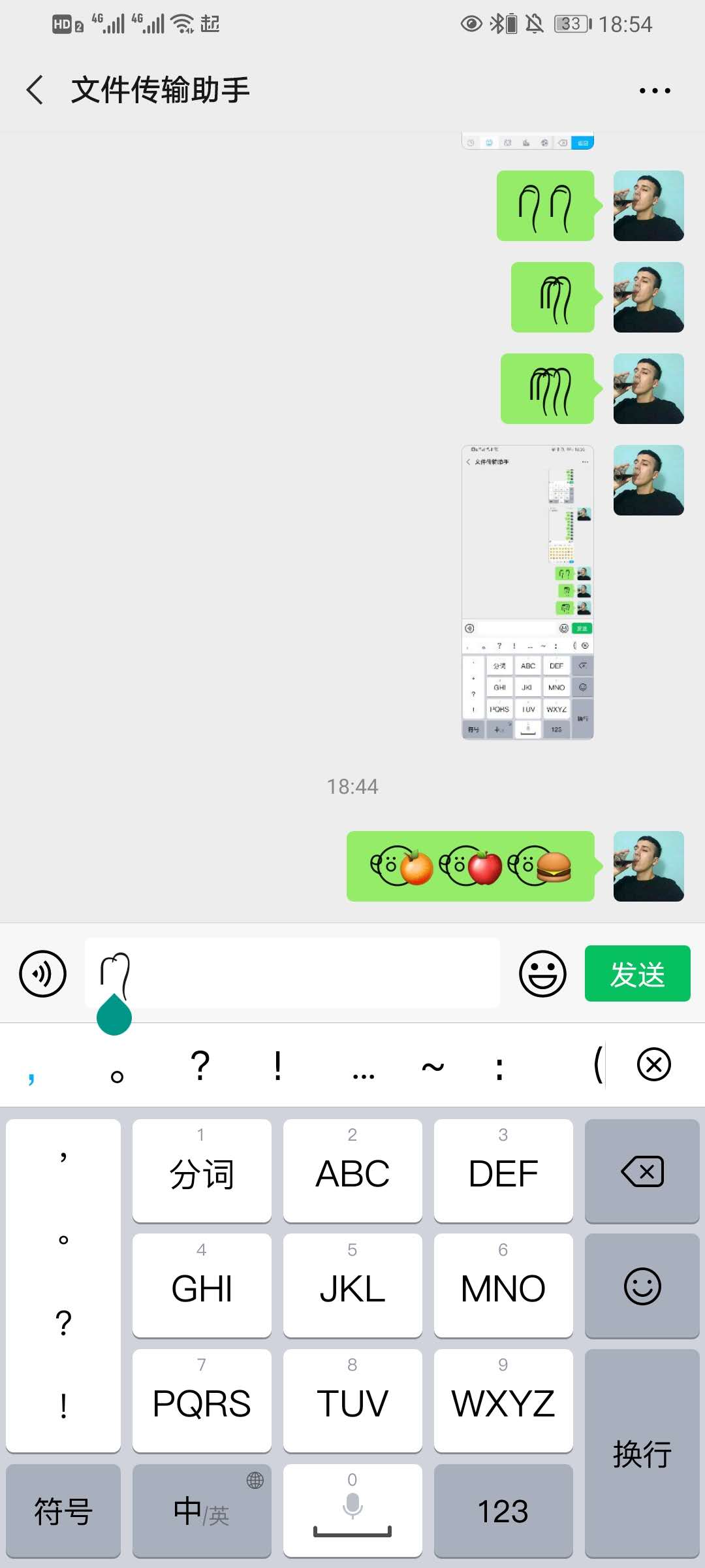 4、每次还可以添加多个小辫子的表情包,只要复制多个辫子就可以一次性发送多个表情。