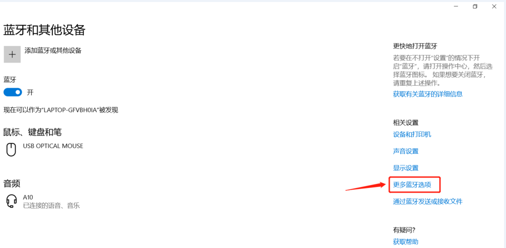 如图,在列表中查找蓝牙设备,我的蓝牙耳机名称是【A10】,点击之后,电脑即会自动连接蓝牙耳机,