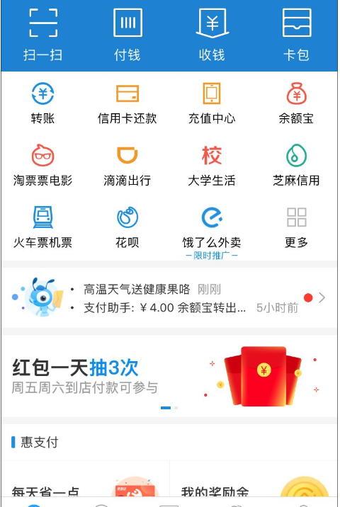 1.打开支付宝,点击卡包。