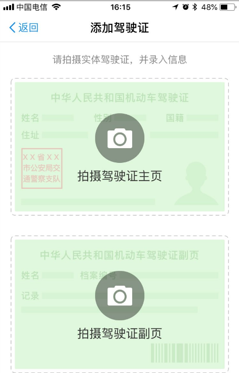 4.把你的驾驶证信息填入,进行拍照提交审核。