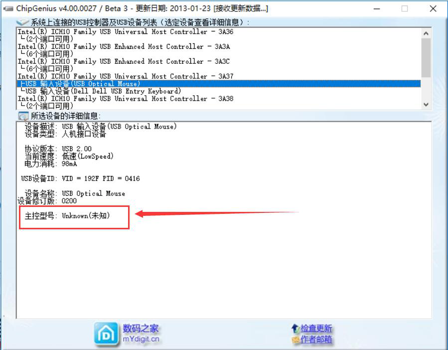 6、反之,如果ChipGenius无法将U盘的型号、厂商那些核心信息检测出来,该U盘基本可以判定是假货,如下图。