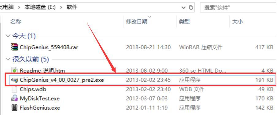 2、然后,我们可以从本站下载ChipGenius这款芯片精灵软件。下载后是一个压缩包,我们将它解压,再运行“*.exe”应用程序。