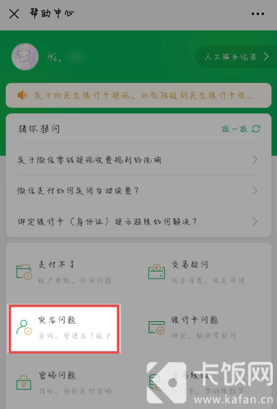 5、进入帮助中心后,找到【实名问题】点击进入;