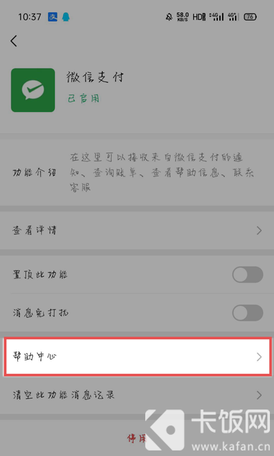 4、在微信支付设置页面,点击【帮助中心】进入下一步;