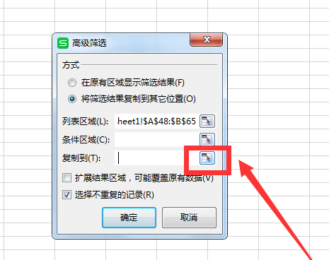 然后点击复制到所属图标,回到高级筛选窗口,点击确定按钮,