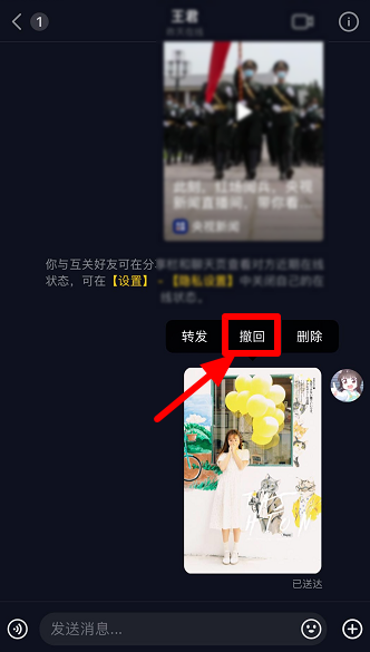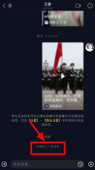 如图,提示“你撤回了一条消息”,成功撤回私信。