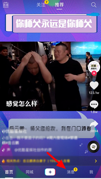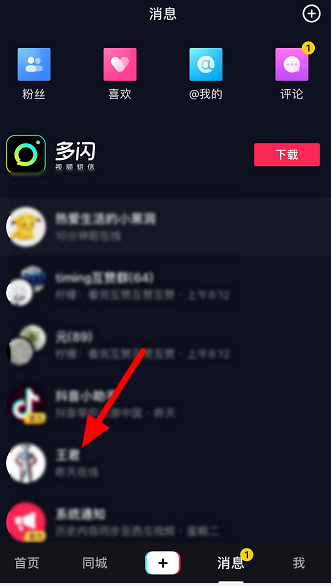 在手机中打开抖音短视频,进入软件界面,点击下方【消息】,