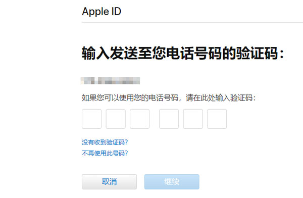 3、然后输入Apple ID绑定的手机号码,点击【继续】;