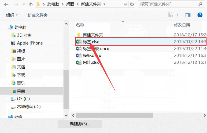 3、此时,在弹出的文件选择窗口中,将自己事先用Excel做好的产品标签信息表选中,点击“打开”按钮。