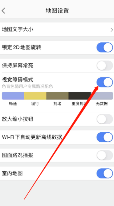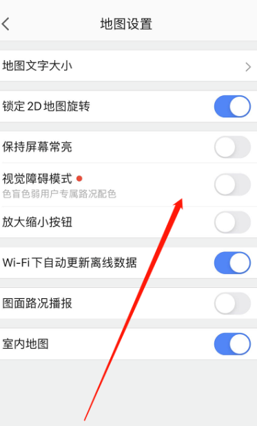 进入地图设置界面,点击【视觉障碍模式】,这个模式适合色盲和色弱患者,