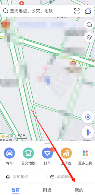 在手机中打开高德地图,进入首页,点击下方【我的】,进入个人中心,