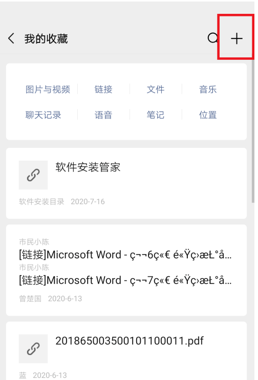 打开收藏功能,进入我的收藏界面,点击【+】,