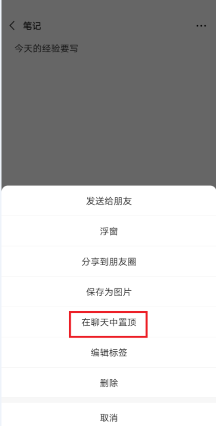 底部会弹出菜单选项,点击【在聊天中置顶】,