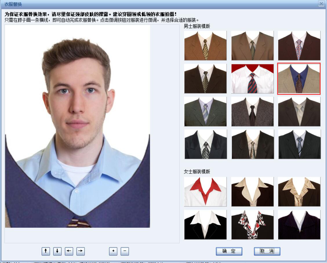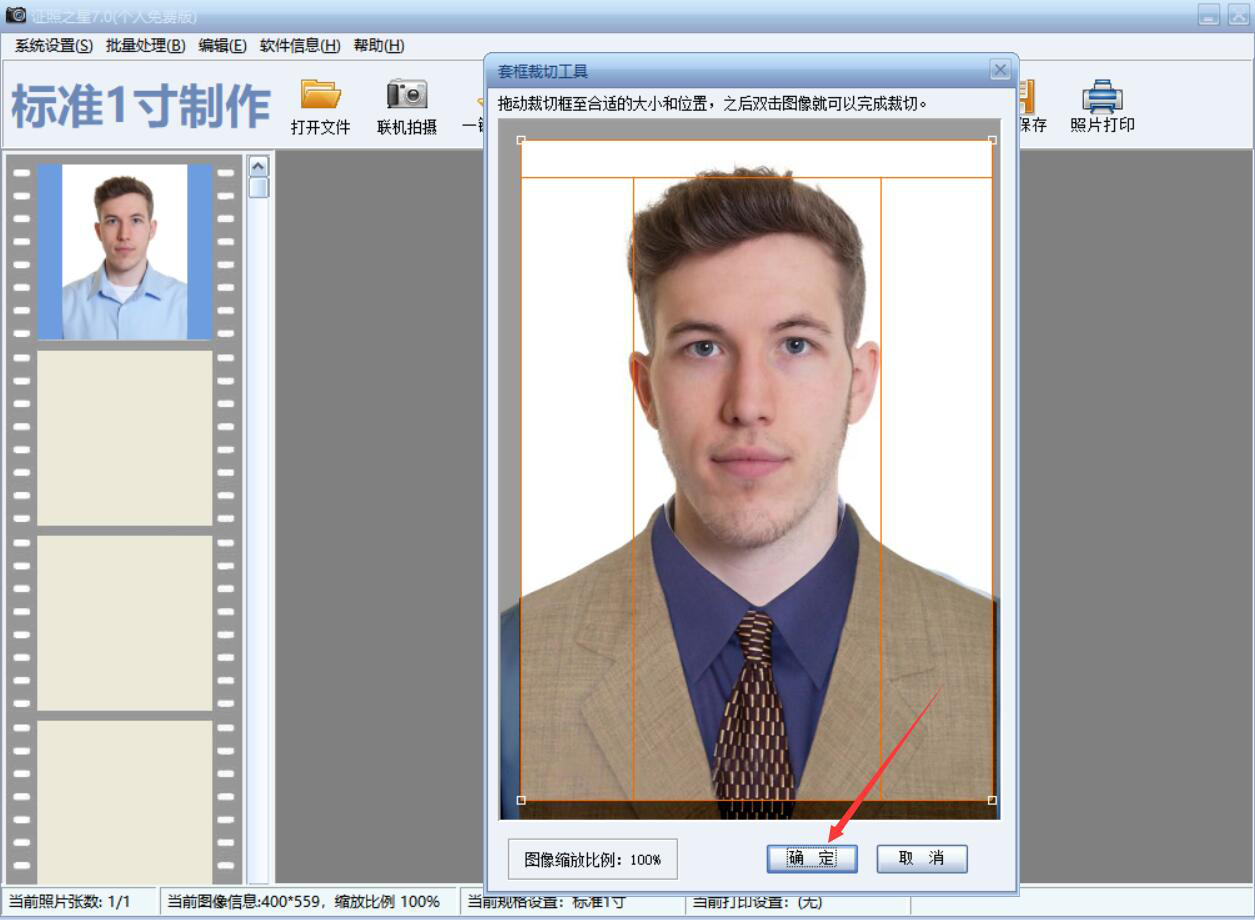 6、此时,证照之星弹出裁切窗口,我们只保留成功换了正装的部分,点击“确定”按钮。