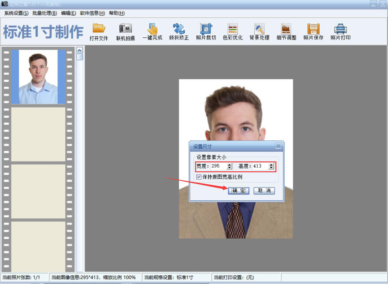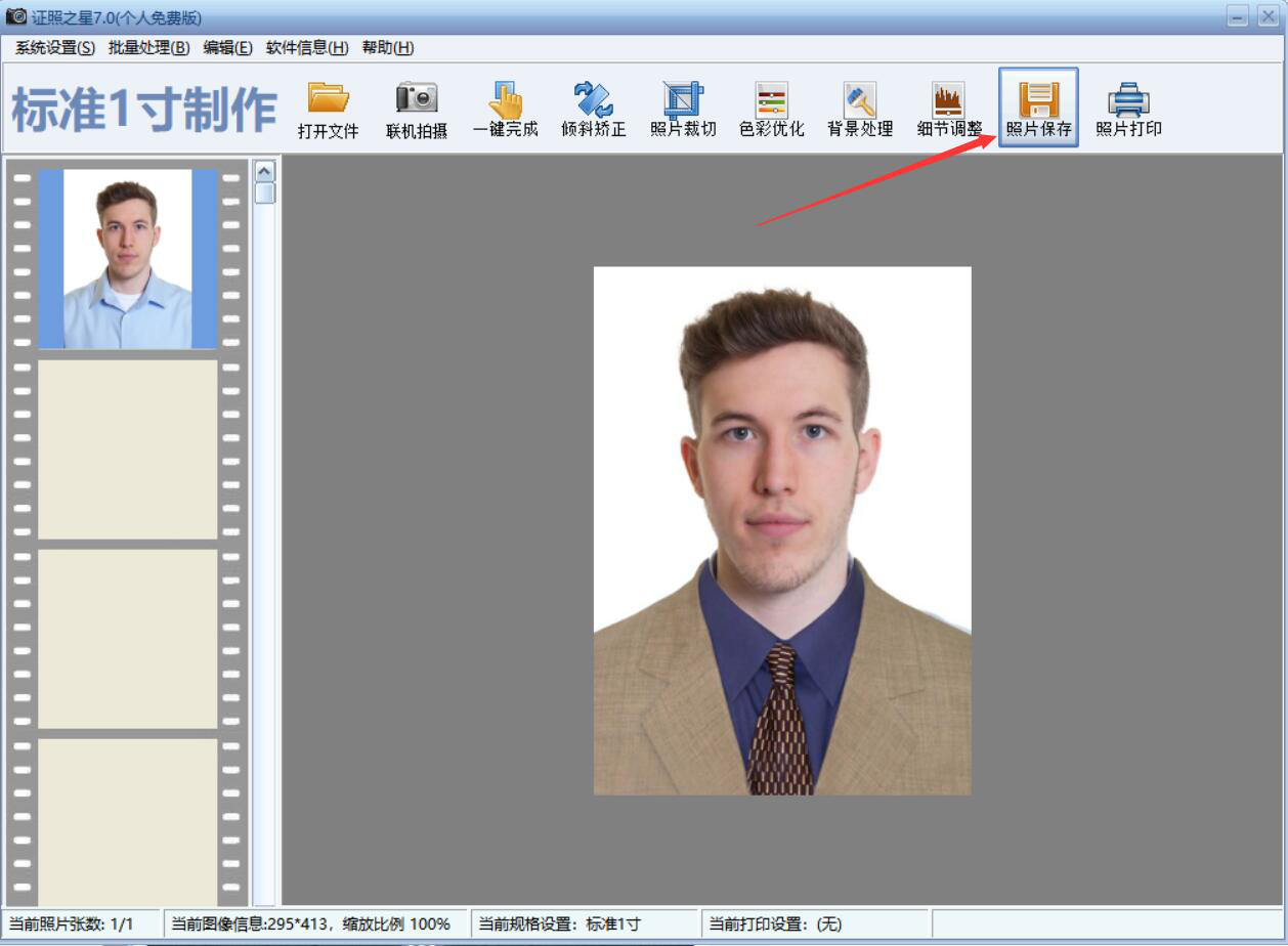 9、最后,换了正装后的证件照无论是服装还是尺寸都符合要求了,点击“照片保存”按钮,证照之星便会将换了正装的照片给保存起来。