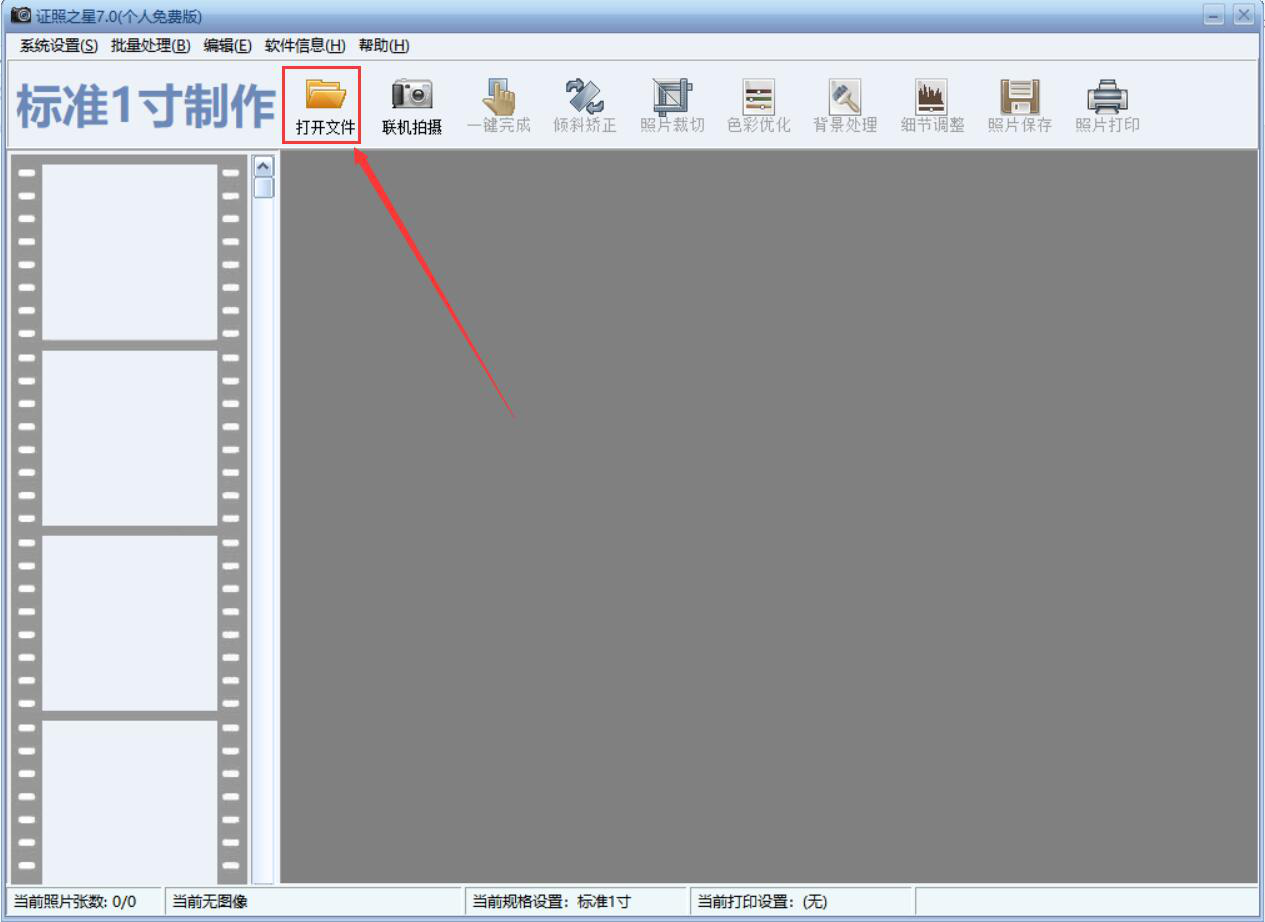 1、首先,我们打开证照之星软件,点击界面中的“打开文件”按钮。