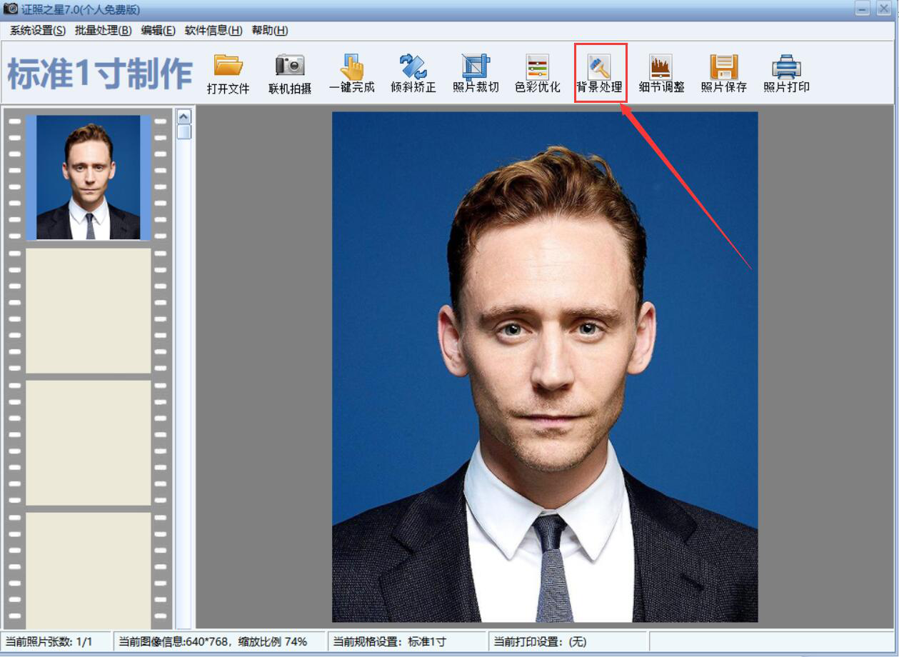 3、然后,我们点击证照之星的“背景处理”菜单按钮。