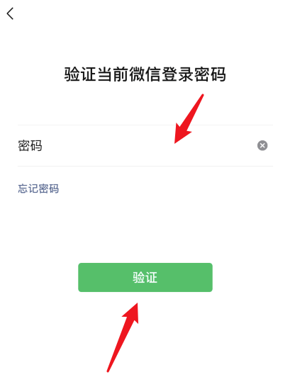 如图,输入微信的密码,点击进行验证,