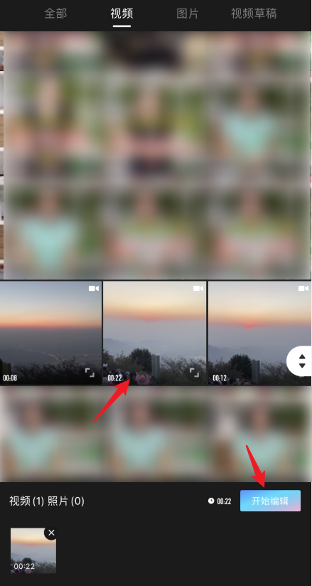 跳转至以下界面,选择素材,勾选需要编辑的视频,点击右下方的【开始编辑】,