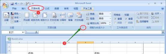 2、点击菜单中的【页面布局】,然后在页面设置选项组中点击右侧拓展按钮。