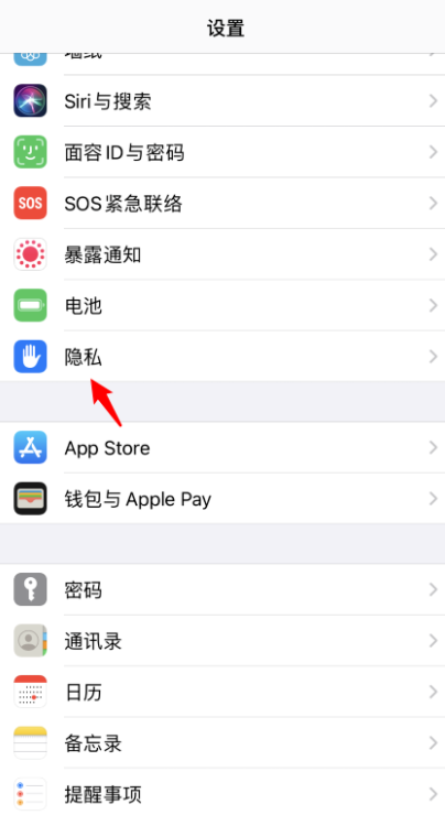 进入手机设置界面,点击【隐私】选项,