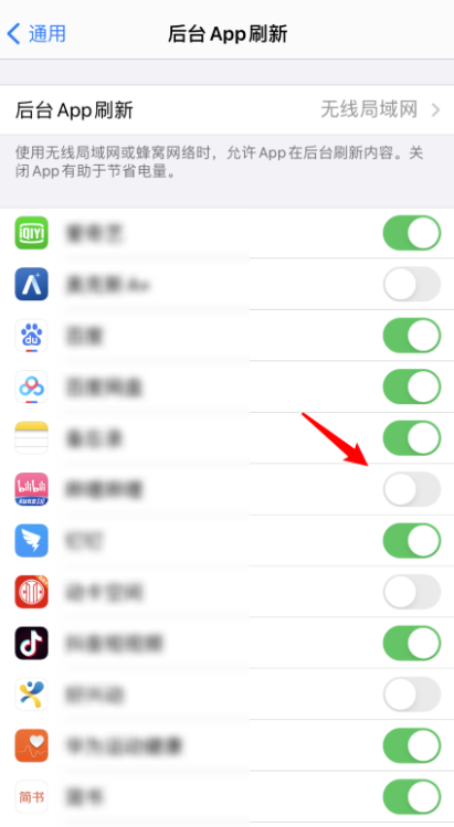 对于不经常使用的应用,将后台刷新关闭即可。