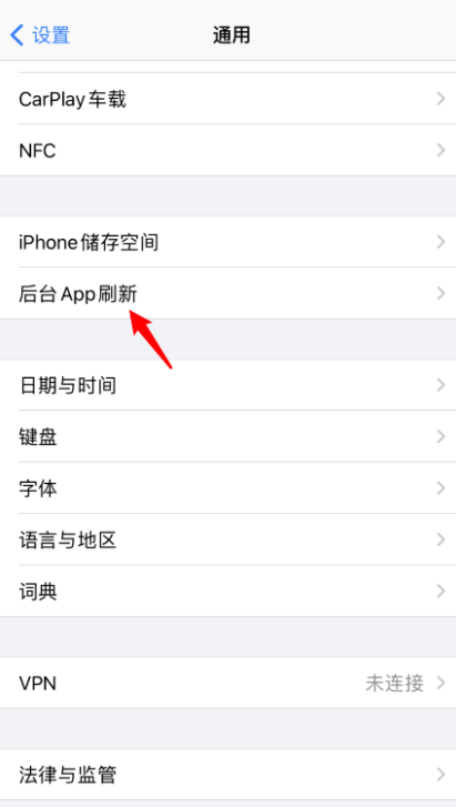 进入设置界面,点击【通用】,选择【后台App刷新】,