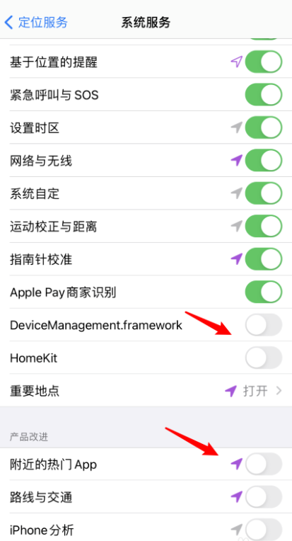 如图,将无用的系统定位服务进行关闭。