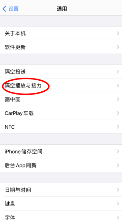 进入以下界面,点击选择【隔空播放与接力】,关闭接力功能。