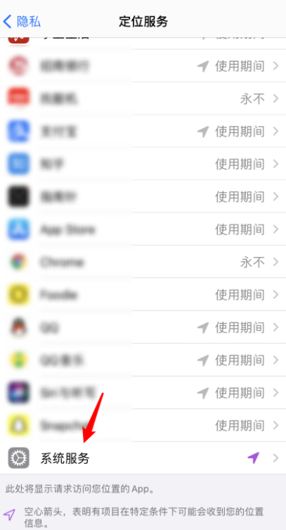 进入隐私设置界面,点击【定位服务】,选择底部【系统服务】,