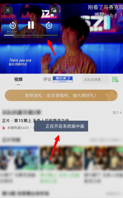 出现提示“正在开启系统画中画”,等待开启成功,开启成功,在左上方会以小窗口的形式显示,