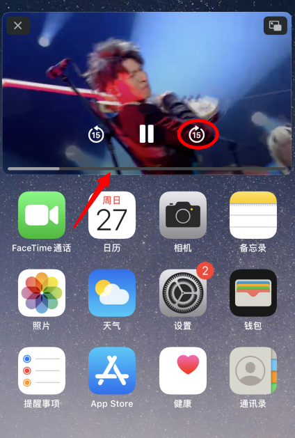 开启画中画功能,回到手机桌面,如图,你可以在窗口中进行视频快进操作,也可以去做其他事情,