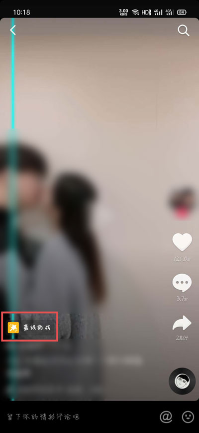 3、也可以通过其他用户拍摄的视频左下角特效,点击进入参与蓝线挑战;