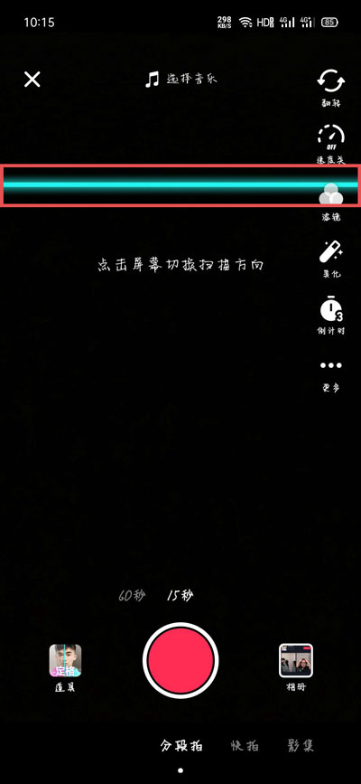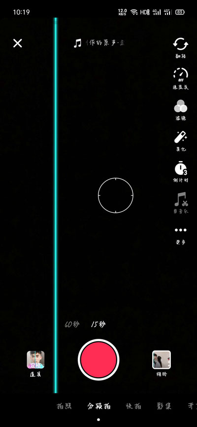 5、等待加载完成后,在拍摄页面出现蓝色线,点击拍摄按钮参与蓝线挑战即可;