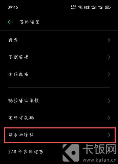 3、点击进入设备与隐私页面后,点击【SIM卡锁定】;