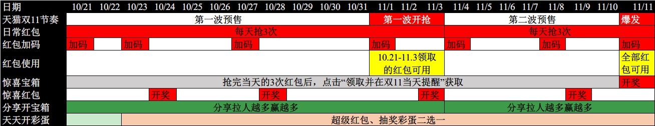 第二波:11月11日(10月21日 - 11月11日领取的红包可用)