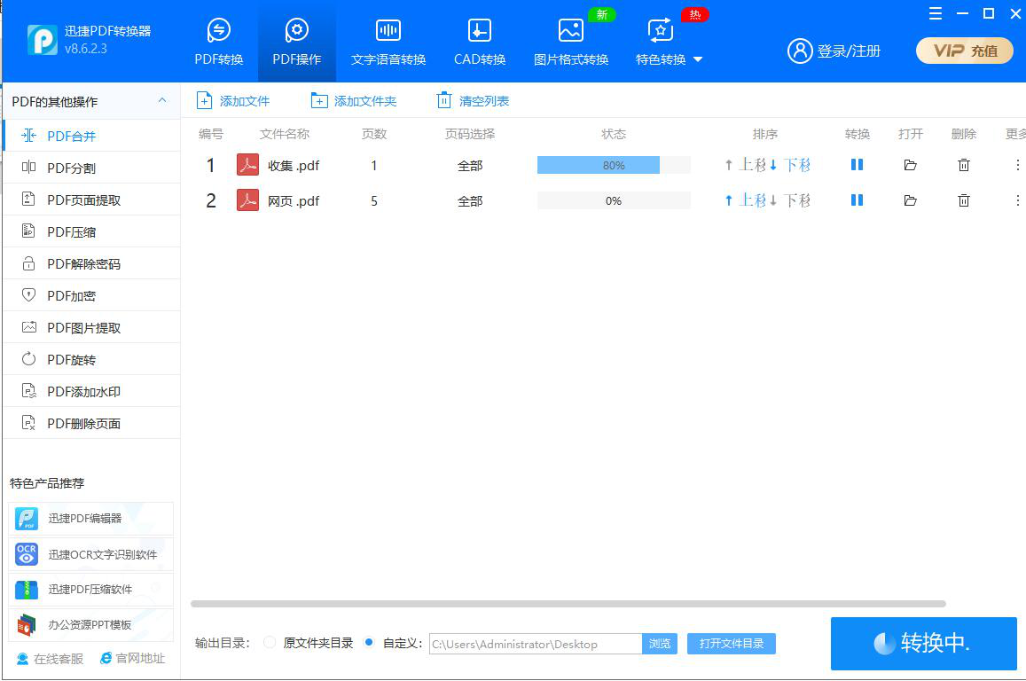 5、接着,在迅捷PDF转换器中,我们可以实时了解到PDF文件合并的进度。
