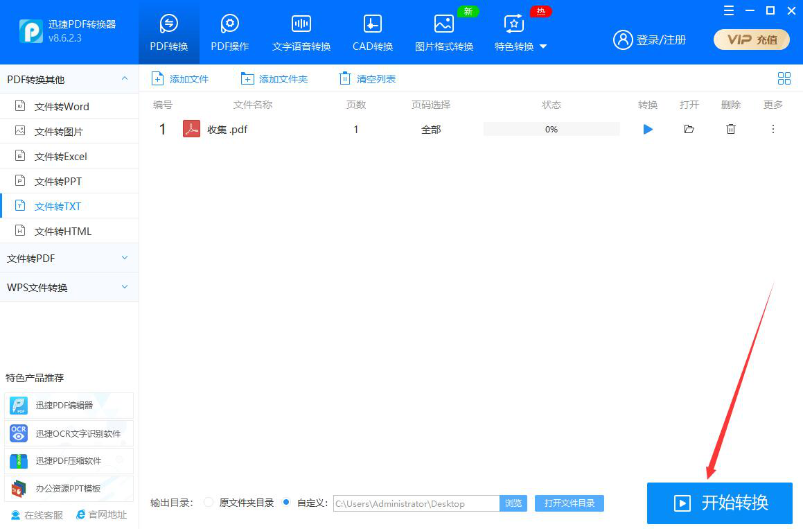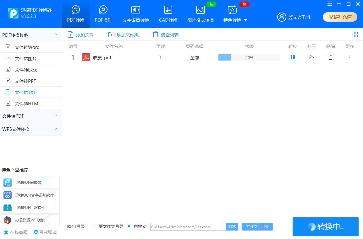 想将PDF文件快速转换为TXT文档,可以使用迅捷PDF转换器来实现,操作简单,几步就能完成。注意,PDF转换后的TXT文档只有文字内容,原来的文字属性也会一并清除。