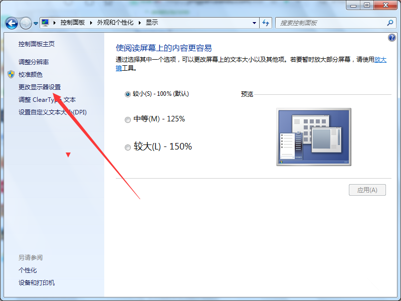 进入显示设置页面,在左侧栏点击【更改显示器设置】,