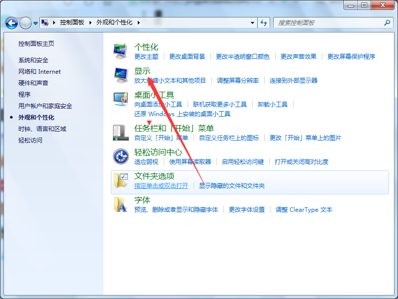跳转至以下界面,如图,在窗口右侧点击【显示】,